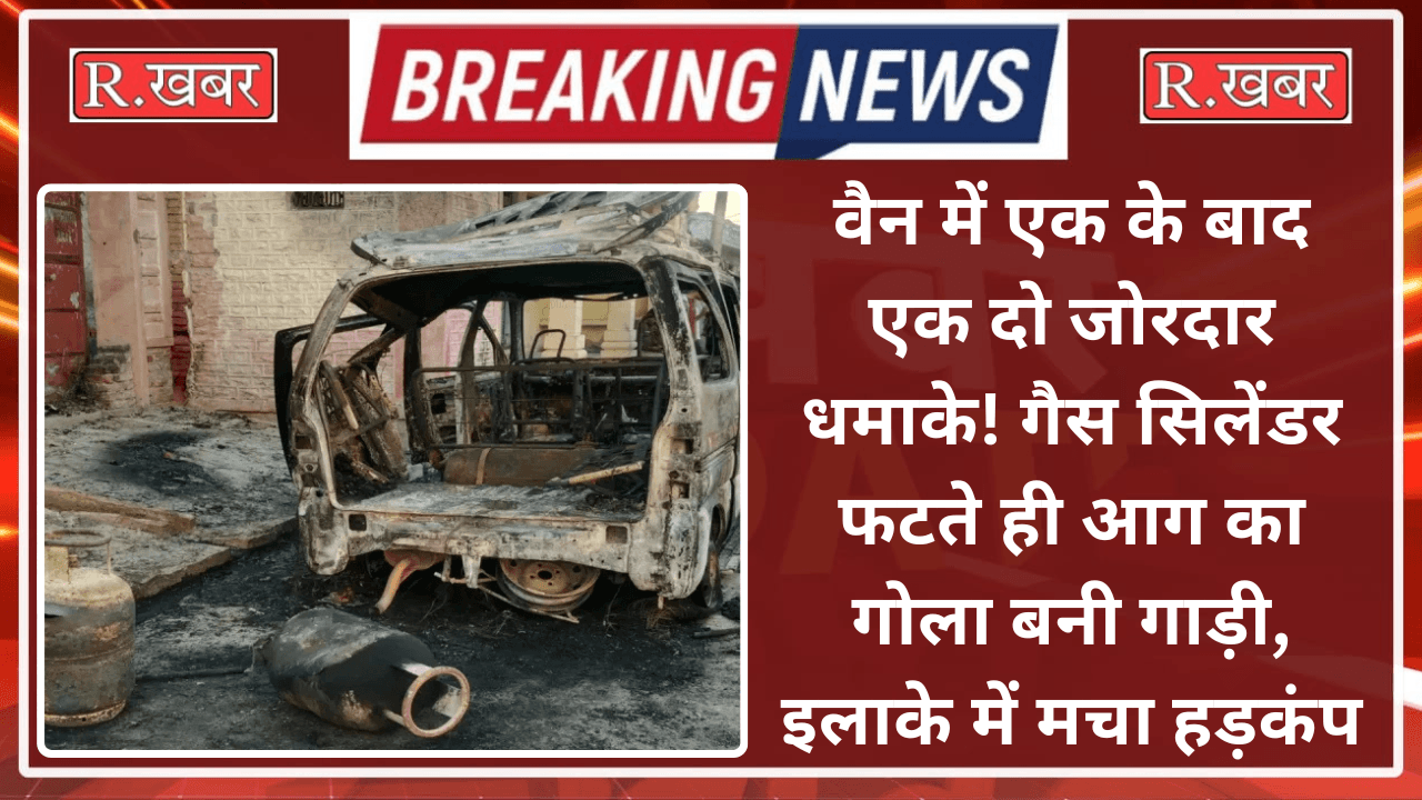 वैन में एक के बाद एक दो जोरदार धमाके! गैस सिलेंडर फटते ही आग का गोला बनी गाड़ी, इलाके में मचा हड़कंप
