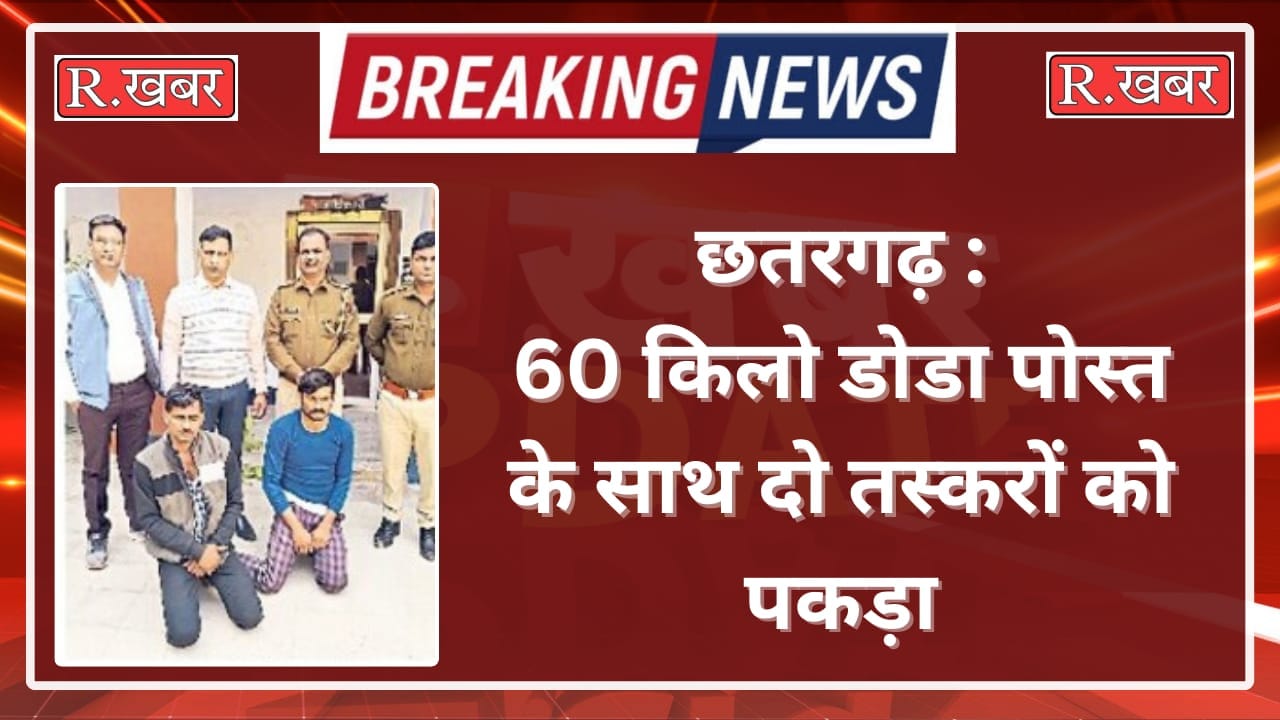 खाजूवाला, नशे के अवैध व्यापार पर अंकुश लगाने के उद्देश्य से चलाए जा रहे विशेष अभियान के तहत छतरगढ़ पुलिस ने नाकाबंदी के दौरान दो तस्करों को 60 किलोग्राम डोडा पोस्त के साथ दबोचा है। साथ ही परिवहन में काम ली गई एक बोलेरो गाड़ी भी जब्त की है।