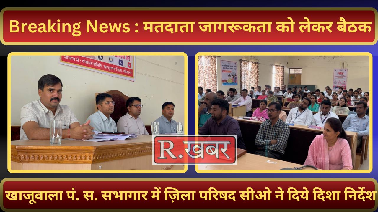 खाजूवाला, मतदाता जागरूकता के लिए पंचायत समिति वार बैठकों की श्रृंखला में बुधवार को खाजूवाला में बैठक हुई। अध्यक्षता करते हुए जिला परिषद के मुख्य कार्यकारी अधिकारी एवं स्वीप प्रभारी सोहन लाल ने सरकारी विभागों के ब्लॉक अधिकारियों-कर्मचारियों को स्वीप गतिविधियों के तहत अधिक से अधिक कार्यक्रम करवाने के लिए निर्देशित किया।